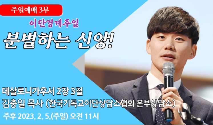 예배/말씀 - 주일예배 - 수요예배 - 특별예배 - QT 매일만나 - 특별새벽기도 - 말씀과기도축제 - 초빙강사 - CTS - 오디오설교(MP3) - 이전설교(18-21) 이 시대에 우리가 할 일! (230419) 스데바나와 같이 행하라! (230402) 중심을 보시는 하나님! (230305) 이스라엘의 집을 세운 것처럼! (230205) 분별하는 신앙! (230205) 갈렙의 신앙을 본받자! (230108) 구역장 뵈뵈! (230104) 마르다가 지적받은 이유! (221207) 이제는! (221204) 예수님의 사고뭉치! (221106) 오직 여호와를 섬기겠노라! (221030) 무릎 꿇고 엎드리는 아버지 어머니! (221019) 목록 제목+내용제목내용댓글이름닉네임아이디등록일태그 1 2 3 4 5 6 7 8 9 10 예배/말씀 주일예배 수요예배 특별예배 QT 매일만나 특별새벽기도 말씀과기도축제 초빙강사 CTS 오디오설교(MP3) 이전설교(18-21)